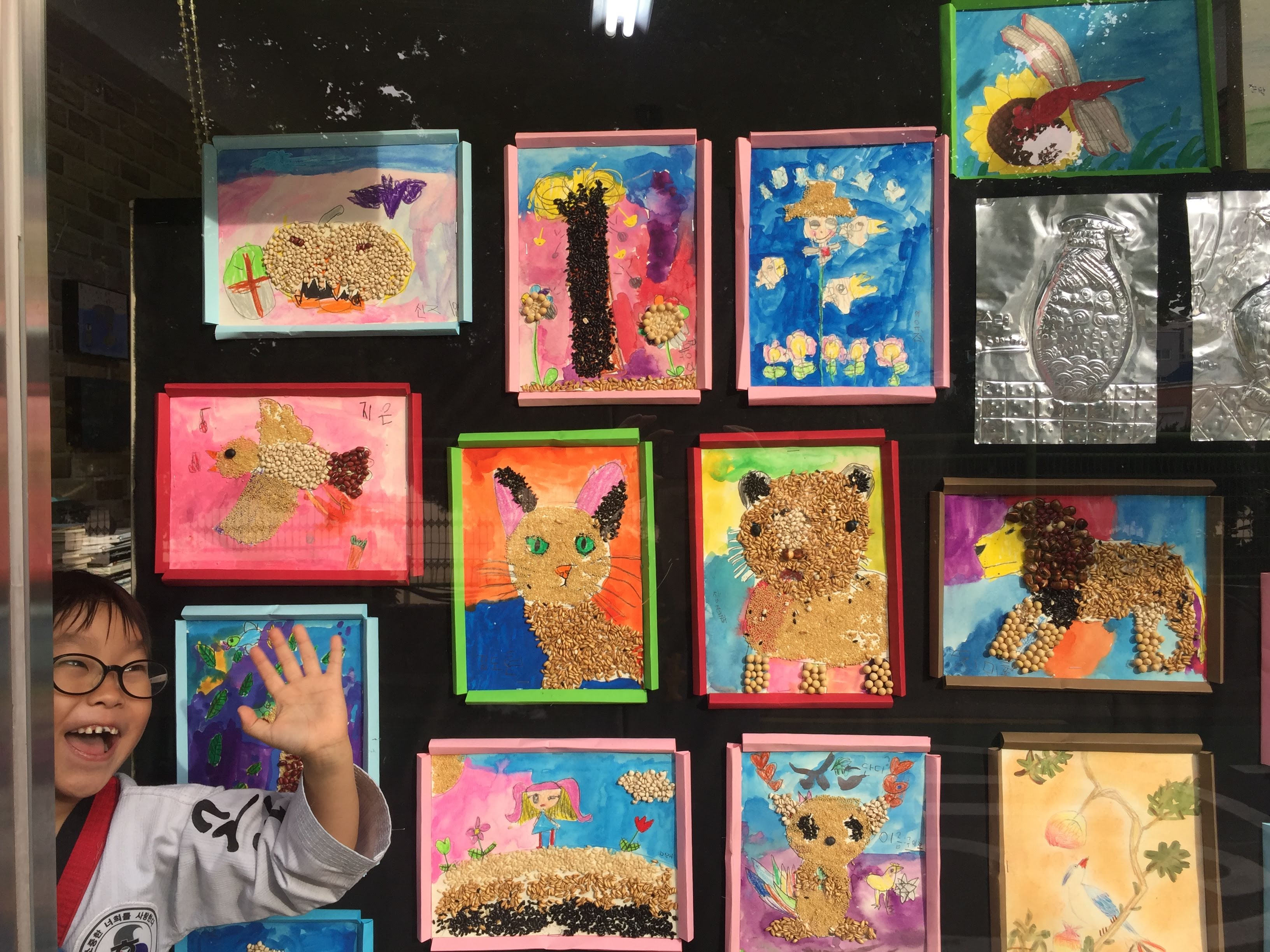 곡물로 꾸민 작품들과 아연판 부조, 채색그림 등으로 다양하게 구성해 보았어요.