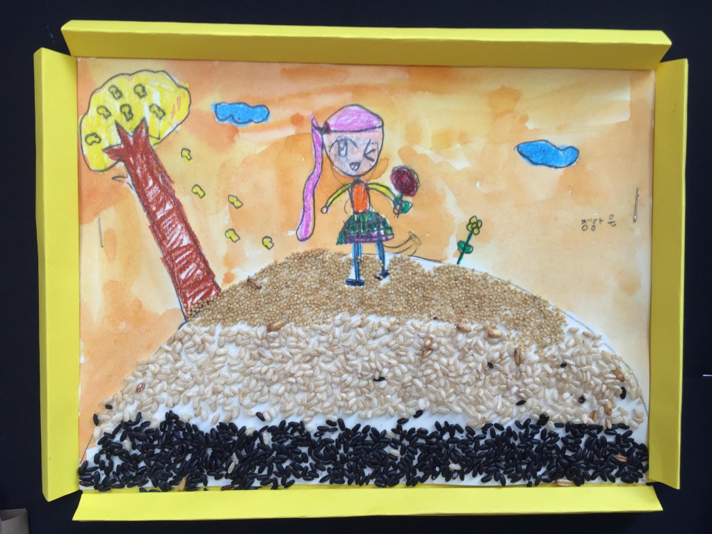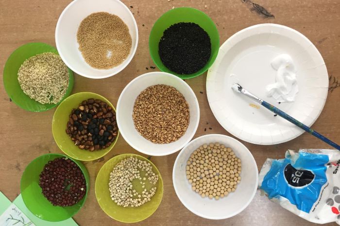 여러가지 곡물이 지닌 고유의 색감과 질감을 느껴 보면서 그림의 재료로 활용해 봅시다.