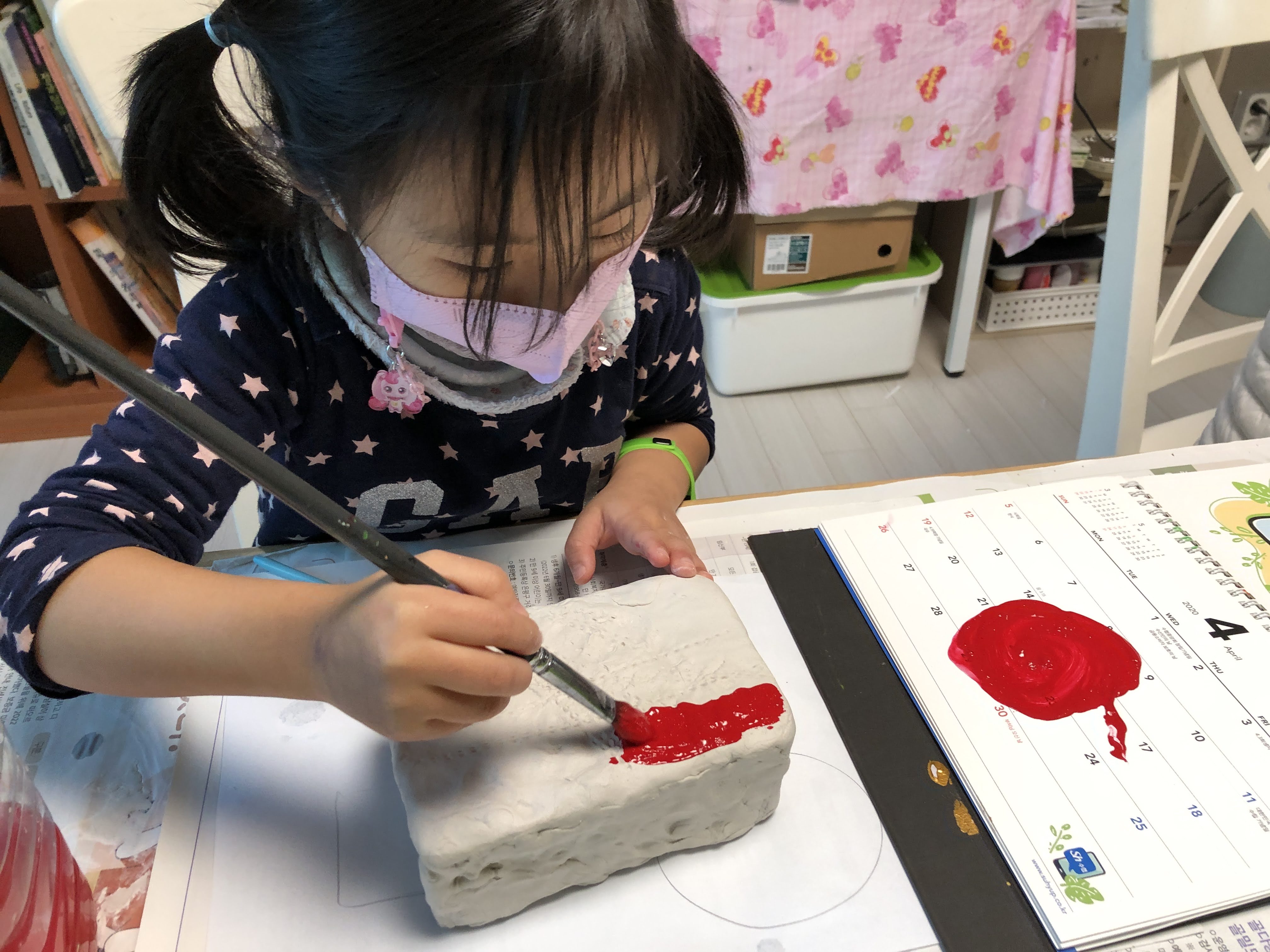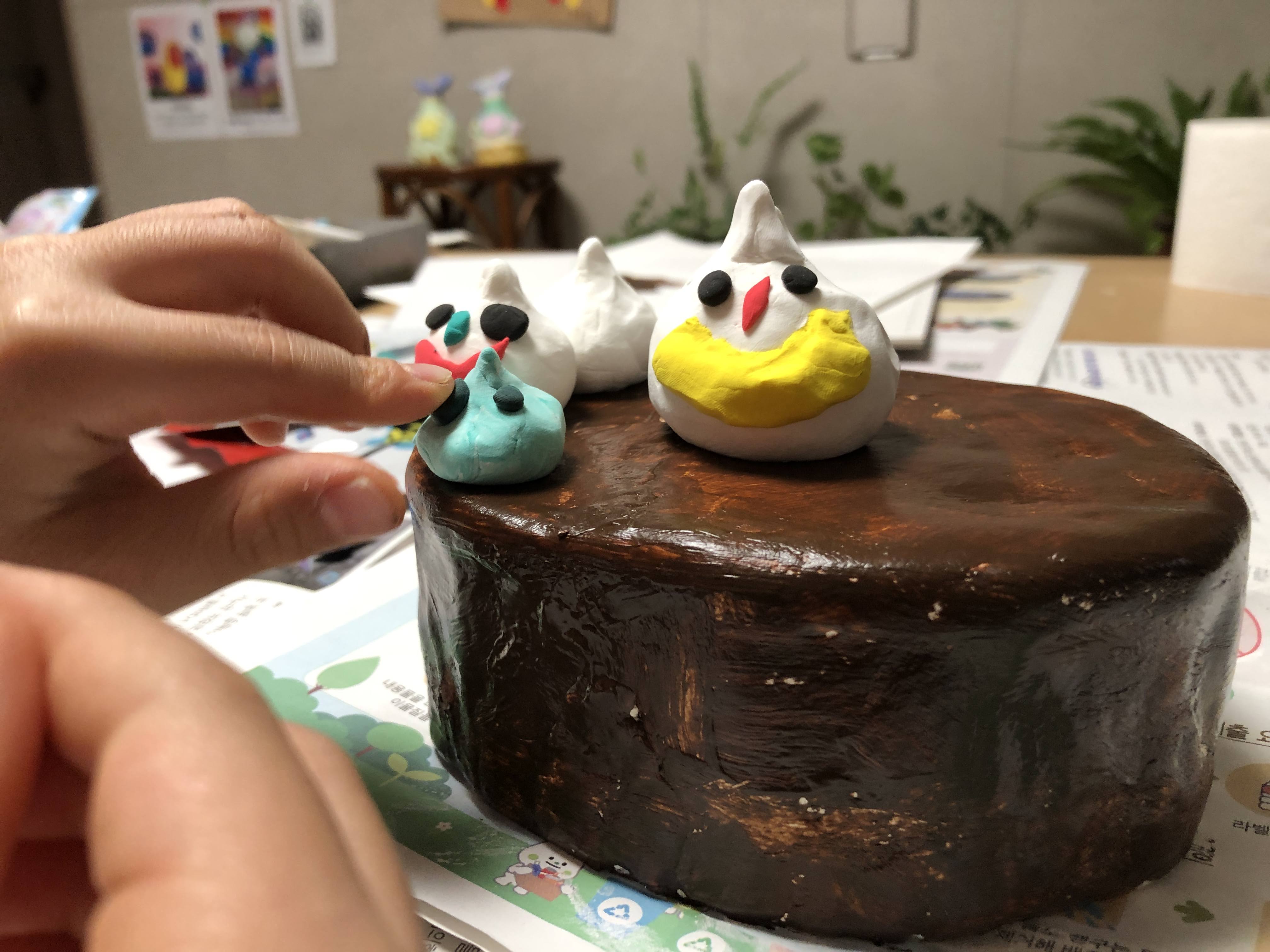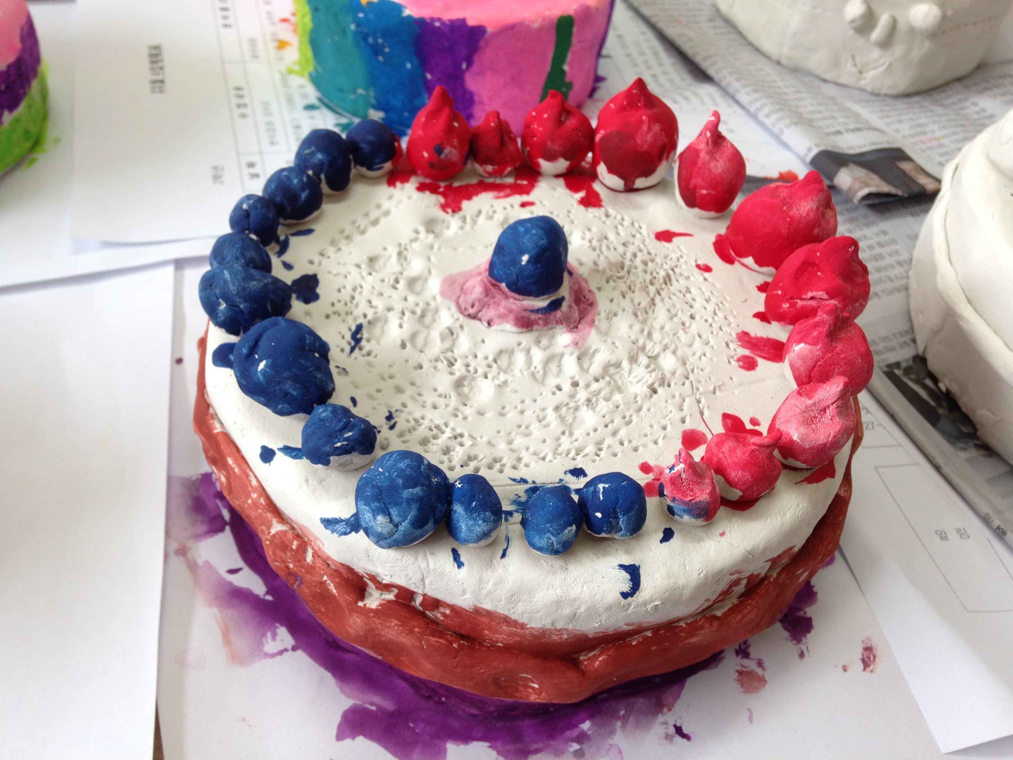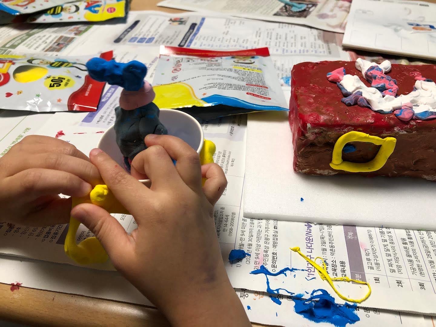 이 때는 지점토와 수채물감으로 작업을 했고 마찬가지로 아이들이 굉장히 만족하고 즐거워했던 기억이 있어요~~^^