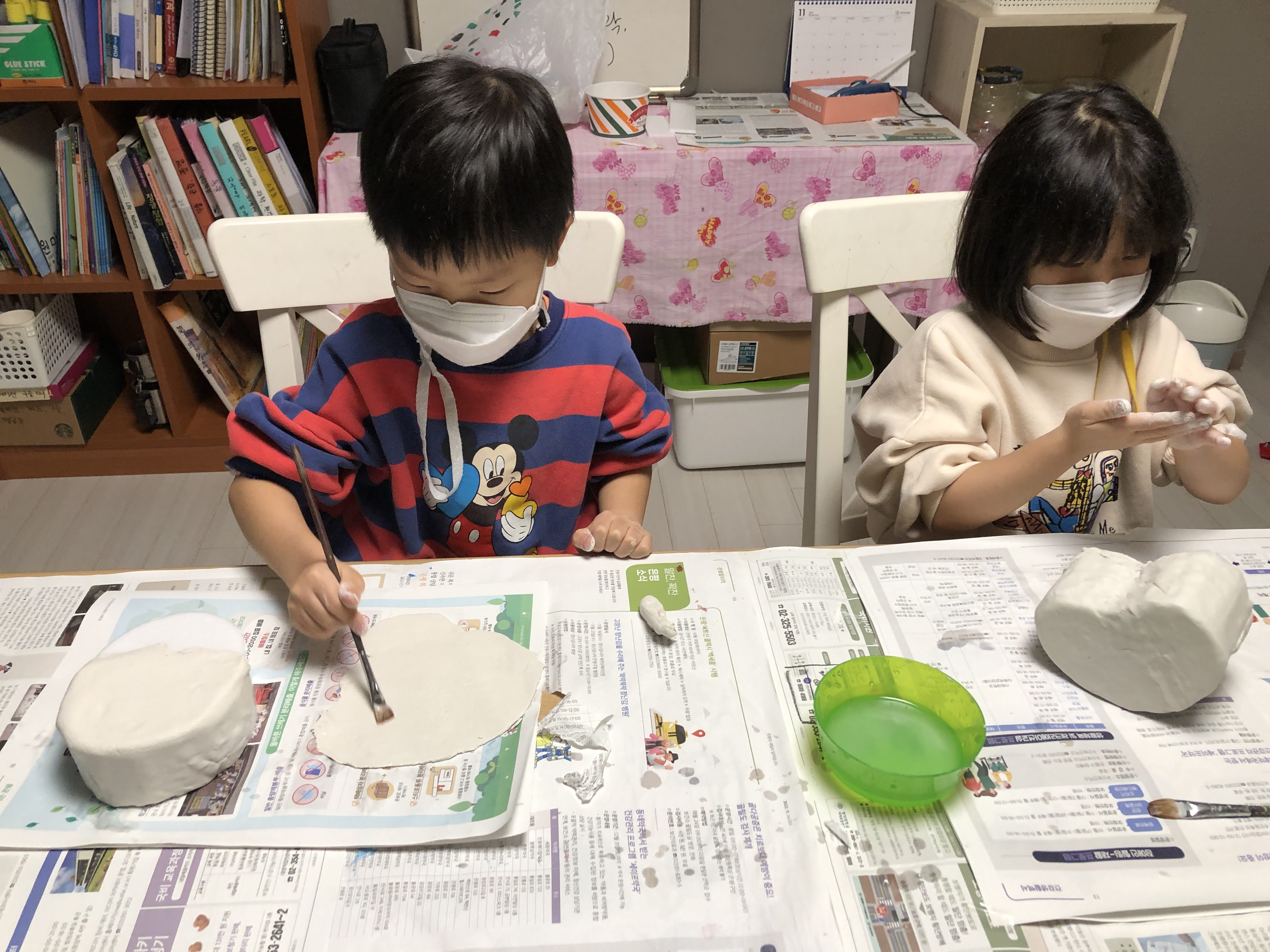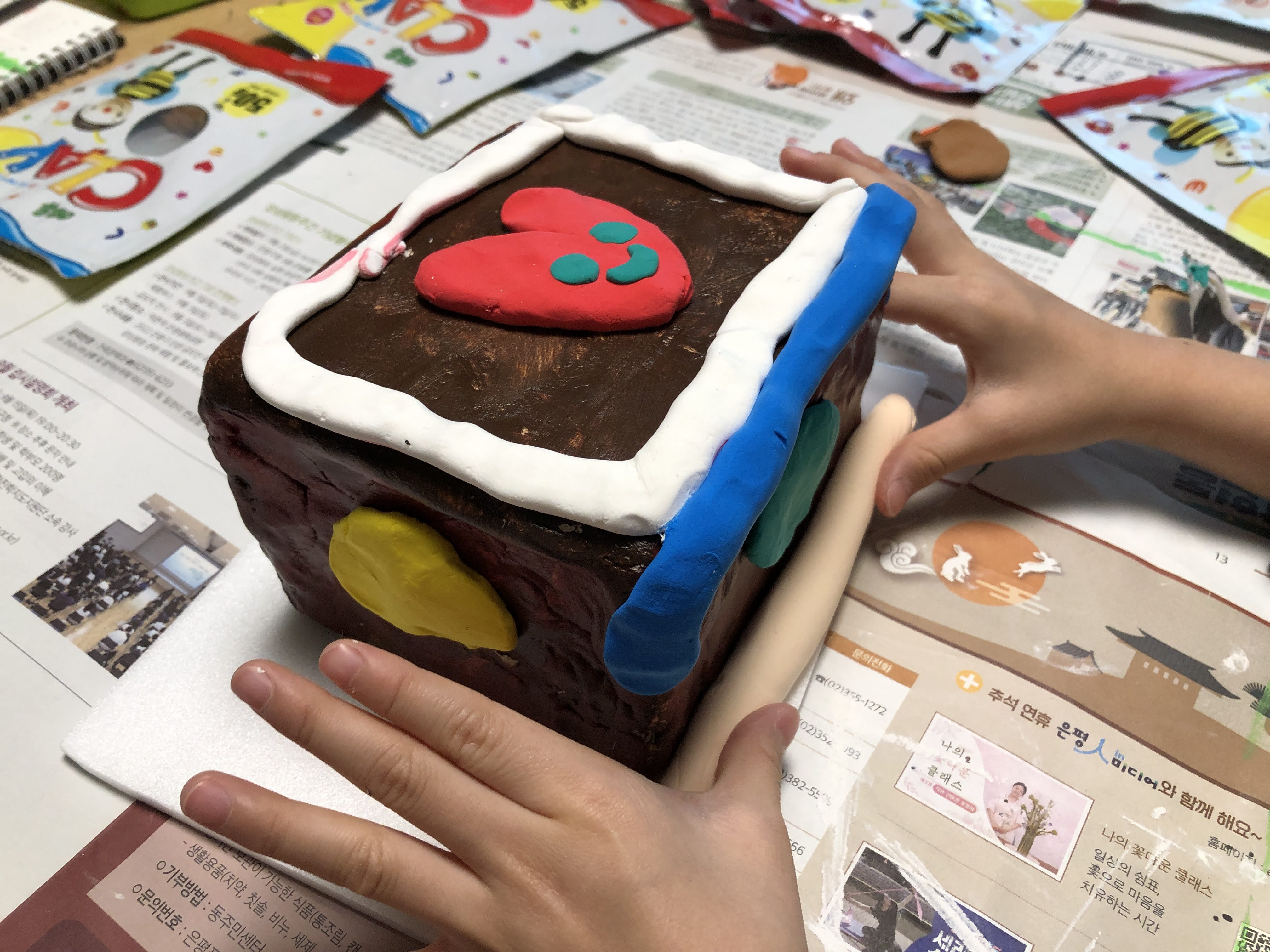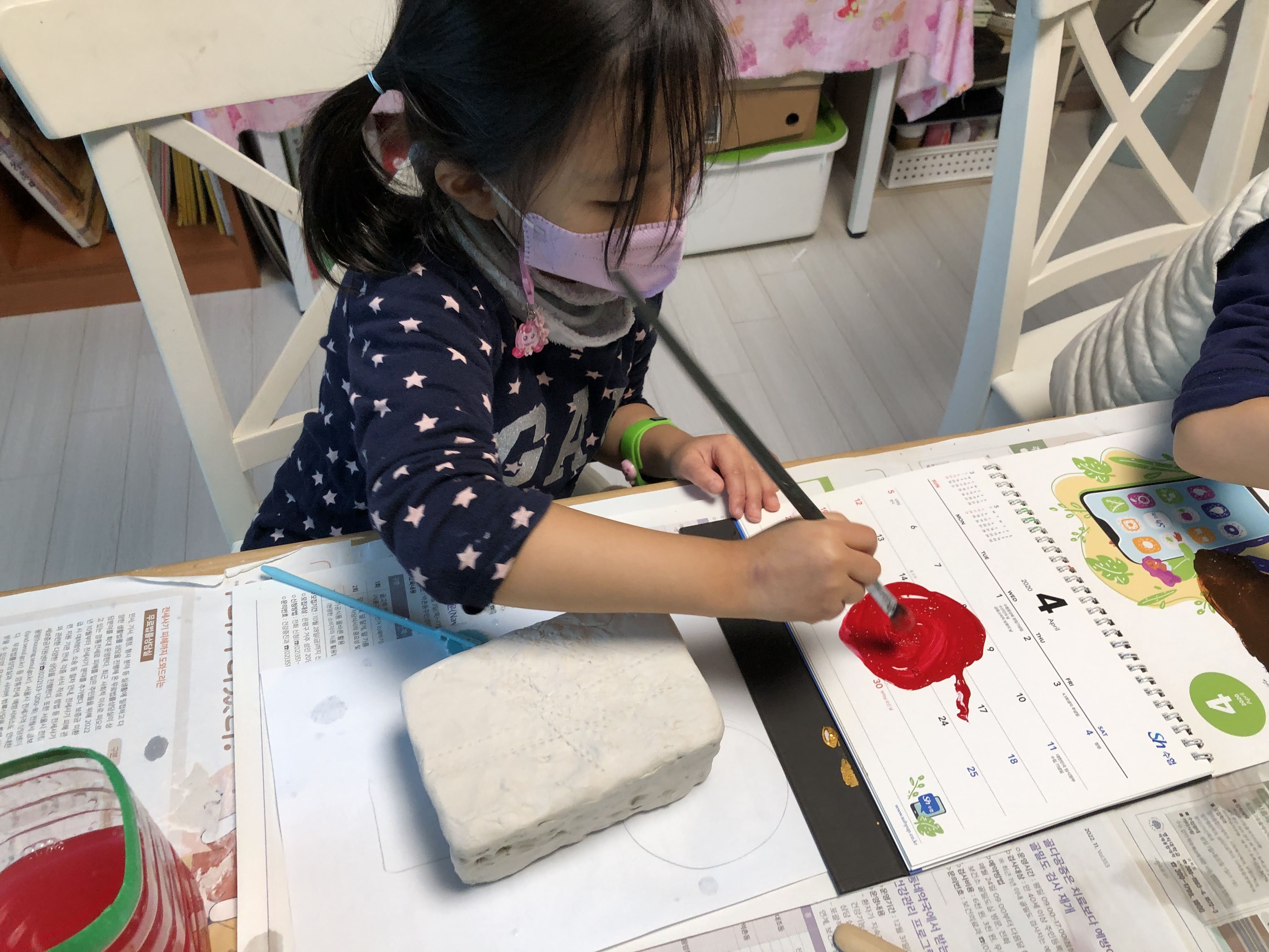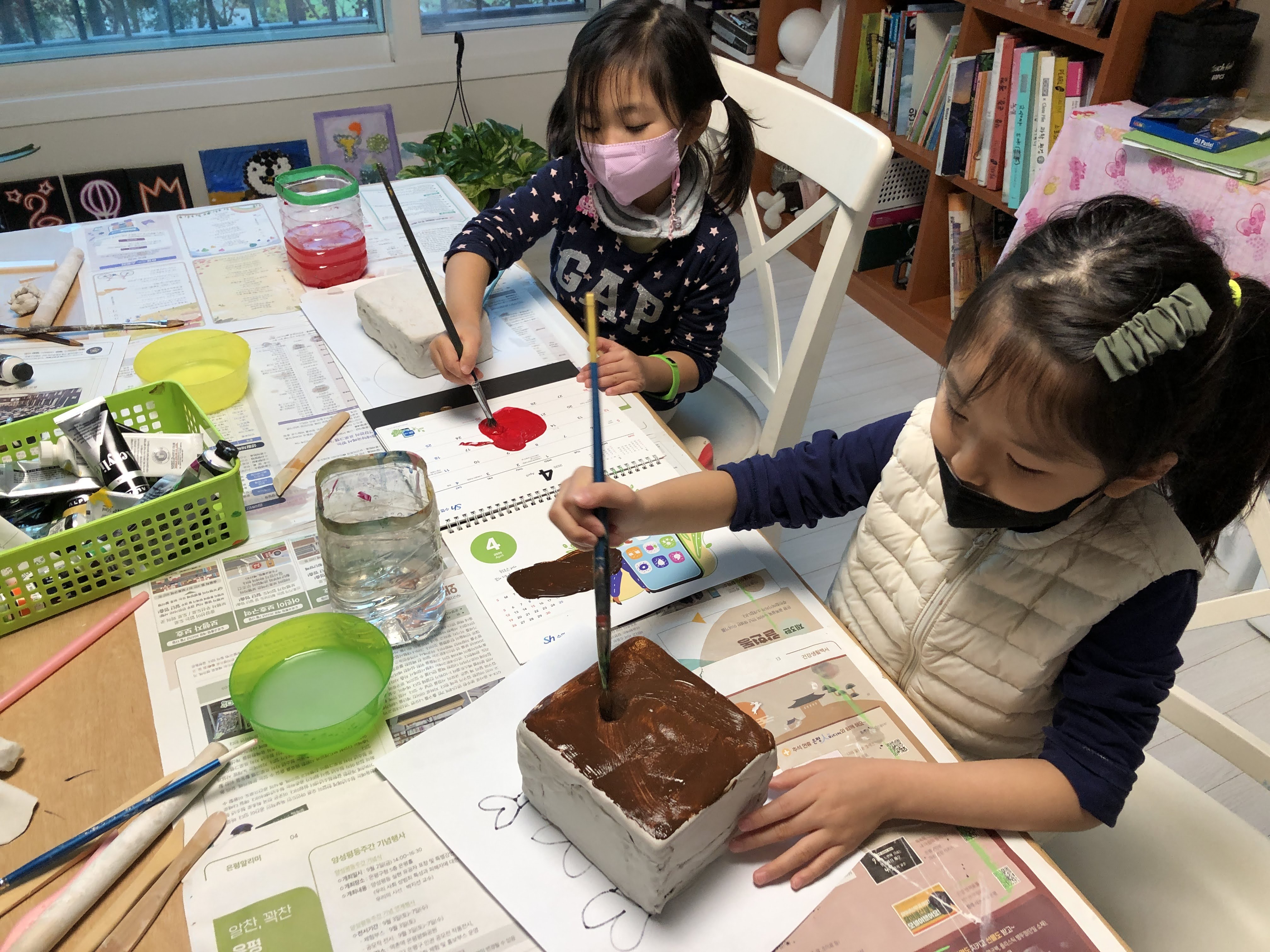 이 때는 지점토와 수채물감으로 작업을 했고 마찬가지로 아이들이 굉장히 만족하고 즐거워했던 기억이 있어요~~^^