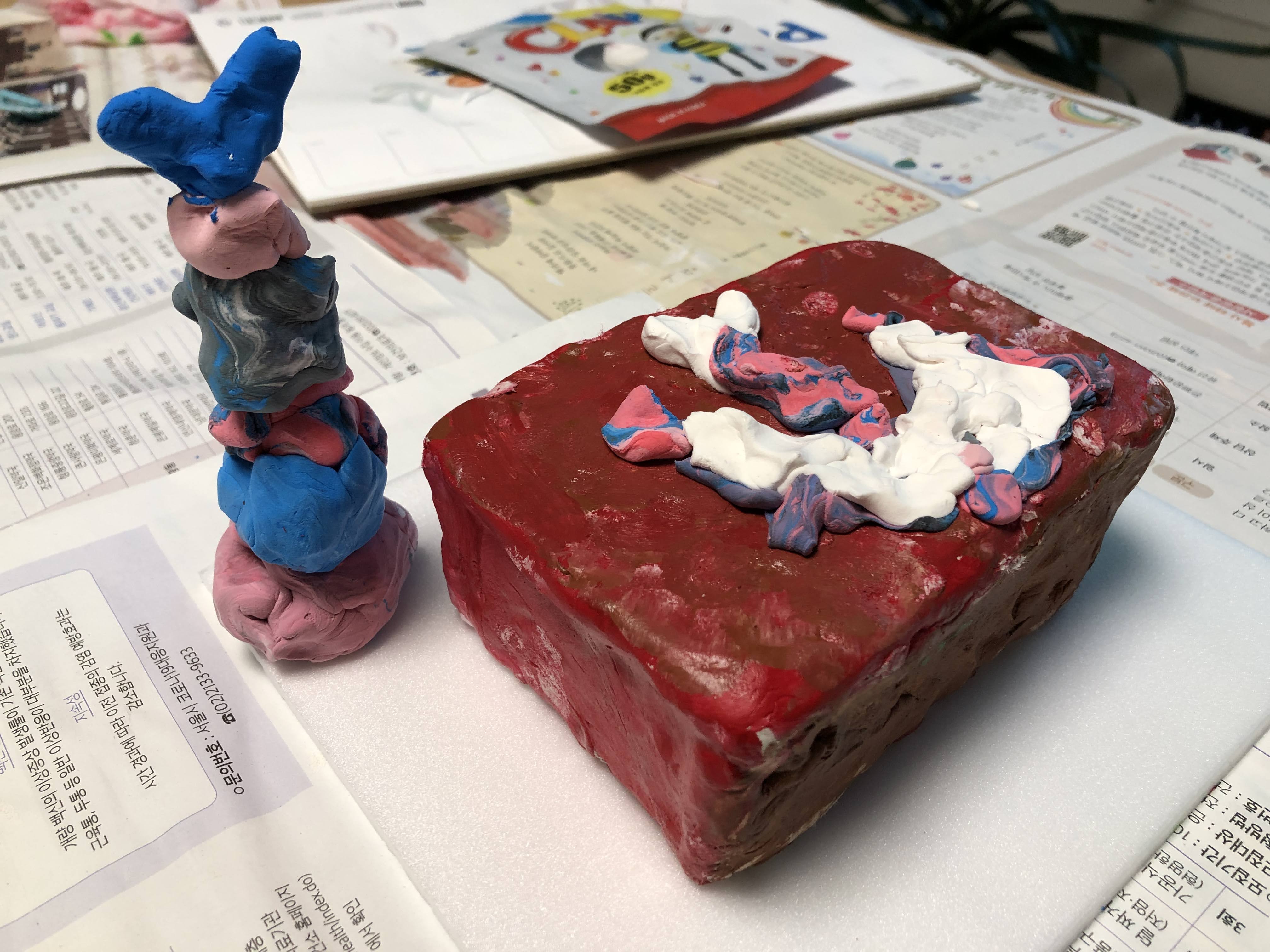 자르고 반죽하고 붙이고 색칠하고 그 위에 또 붙이고...