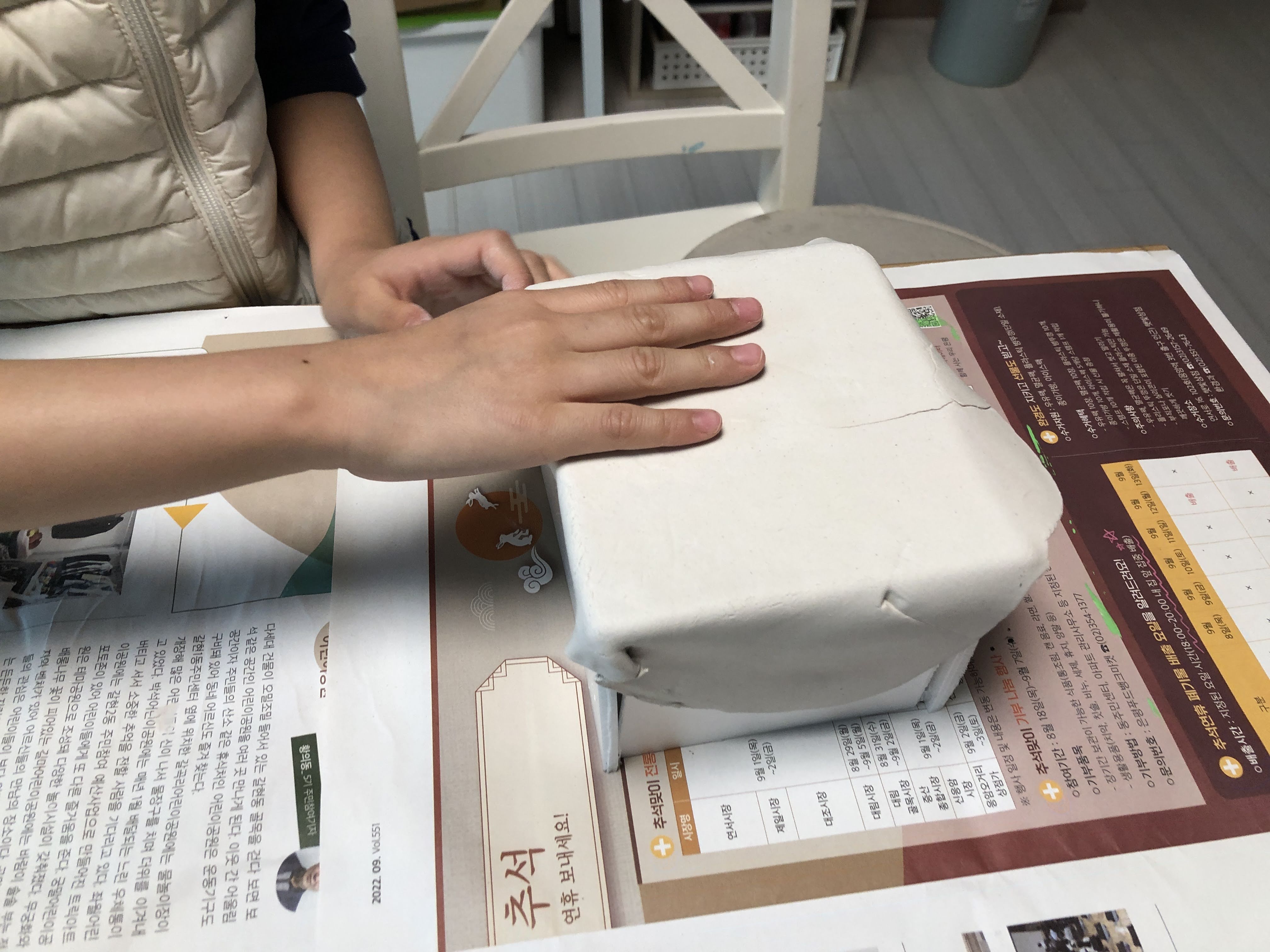 이제 지점토에 물을 발라 골고루 덮어 볼까요?
